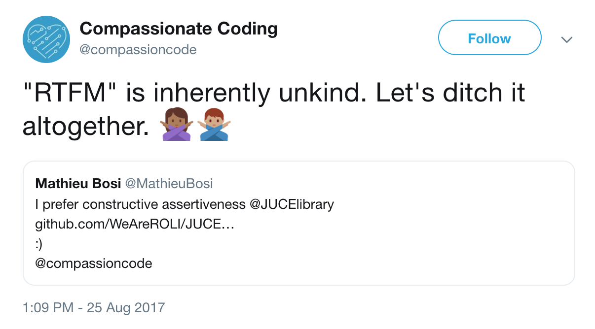 With small changes like retiring RTFM, all of us can do our part to create a more compassionate, welcoming, productive tech community.